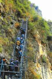 曾经,孩子们背着沉甸甸的书包,每天爬藤梯上下学。