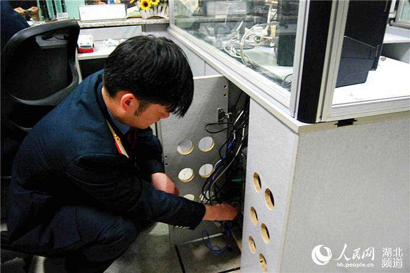 2月13日深夜零点,刚调试完取票机,就听见对讲机里传来呼叫钱顶的声音。原来窗口票机故障,售票员无法继续操作,钱顶得知后从车站架空层飞奔到第一售票厅窗口维修制票机,他双手灵活的在机器上操作着,五分钟后,制票机恢复正常。