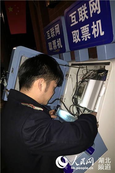 “这是在干嘛?”“我在调试自动取票机,因为春运期间客流太大,为了保证白天取票机可以正常运作,减少故障的发生,所以只能在半夜取票旅客不太多的情况下对机器进行依次调试。”回答问题的小伙叫钱顶,是来自售票车间后台机房的一名“90后”职工,他基本上每天深夜都要与自动取票机打交道。