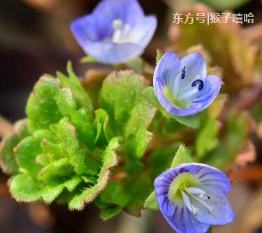 这种植物其实叫做“婆婆纳”,是一种普遍的野生草本植物,农村孩子小时候经常会用它们来扮家家酒,或者放到河里许愿。因为它们的花瓣一碰就掉所以很好采集,除了蓝色还有白色和粉色。